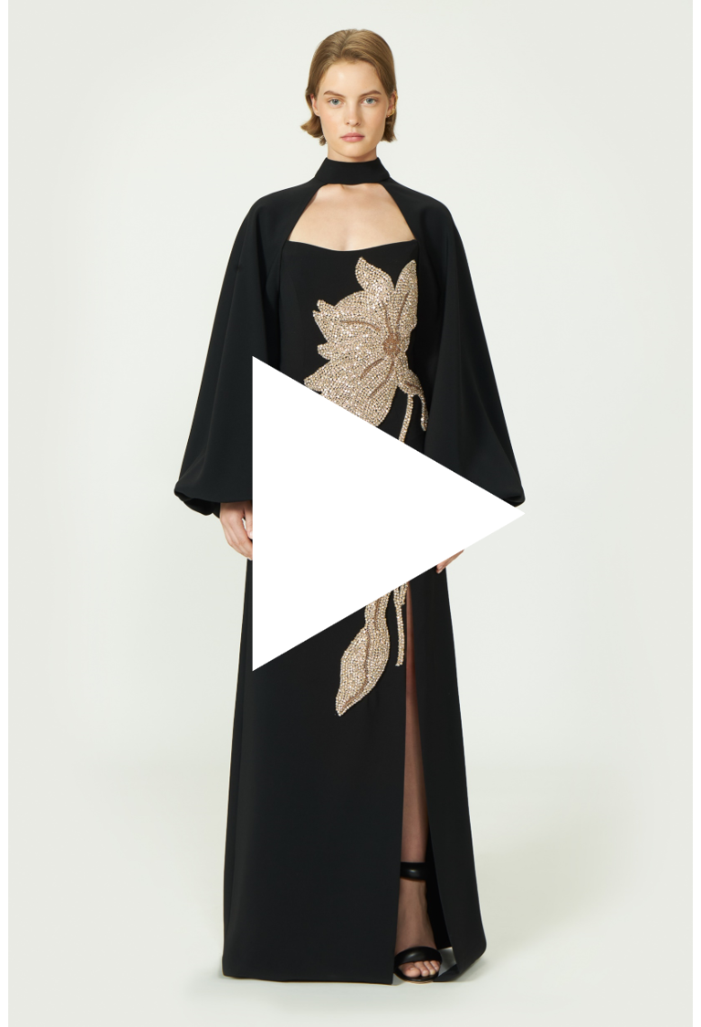 Complete your elegant ensemble with the Adair crepe high-neck bolero, featuring dramatic balloon sleeves and covered button back closure.