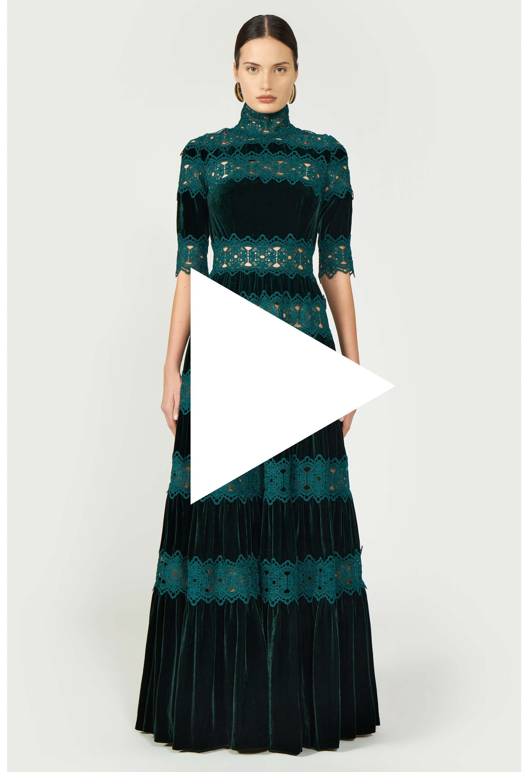 Exude timeless elegance in the iconic Lissie silk velvet gown, accented with intricate guipure lace trims for a touch of vintage allure.