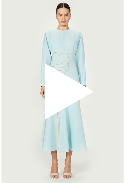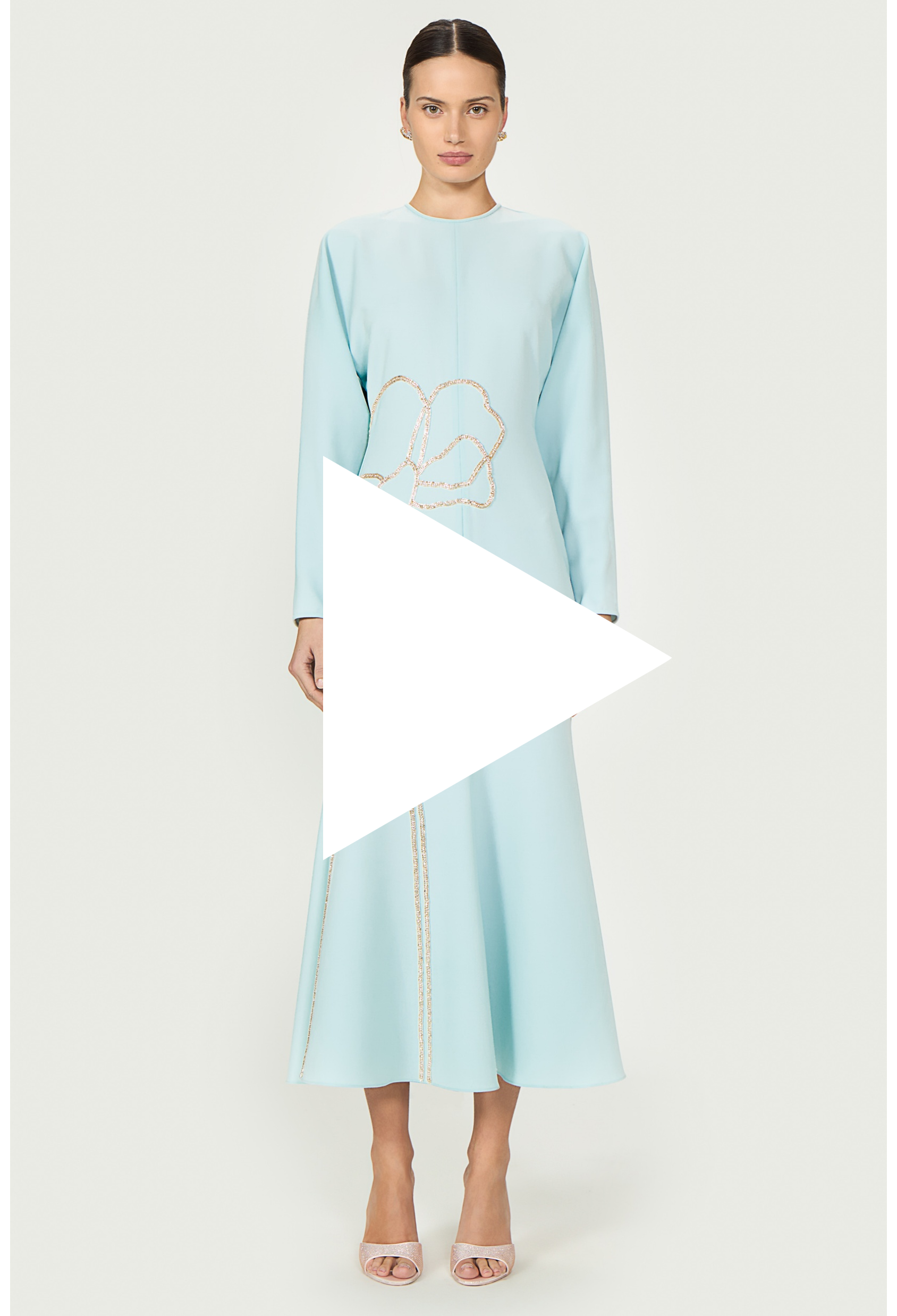 The Avenna crepe dress captivates with its pure lines and sculptural grace, adding a touch of shimmer to every look with the subtle embroidered detailing.