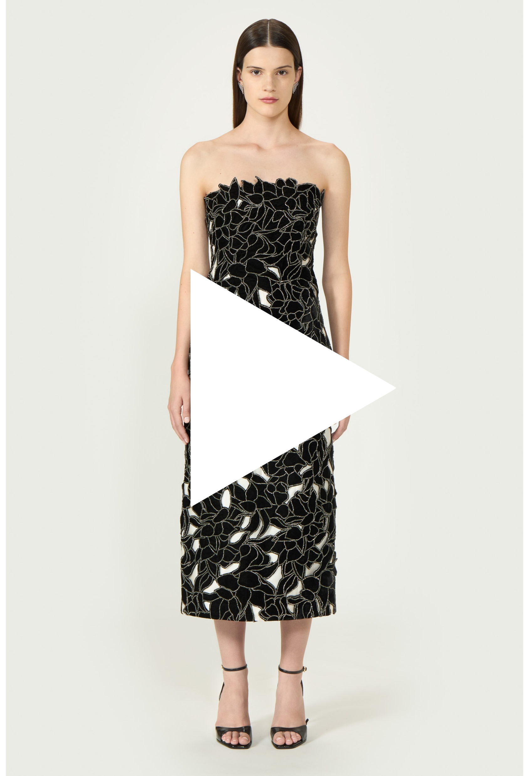 Nellia Floral Cut Silk Velvet Lace Strapless Midi Dress