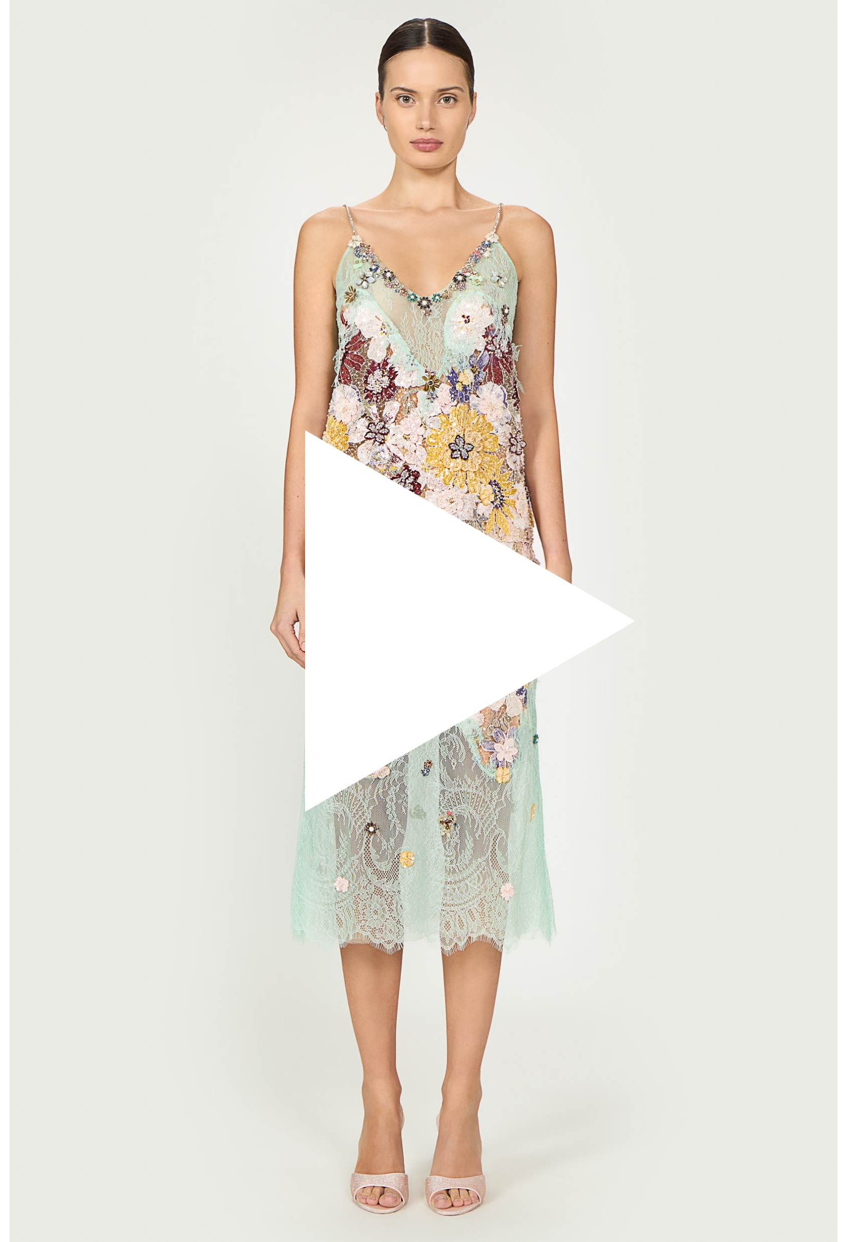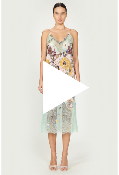The Sasha top, crafted from delicate Chantilly lace, features floral embroideries and crystal embellishments along the neckline bringing extra romantic elements to the design.