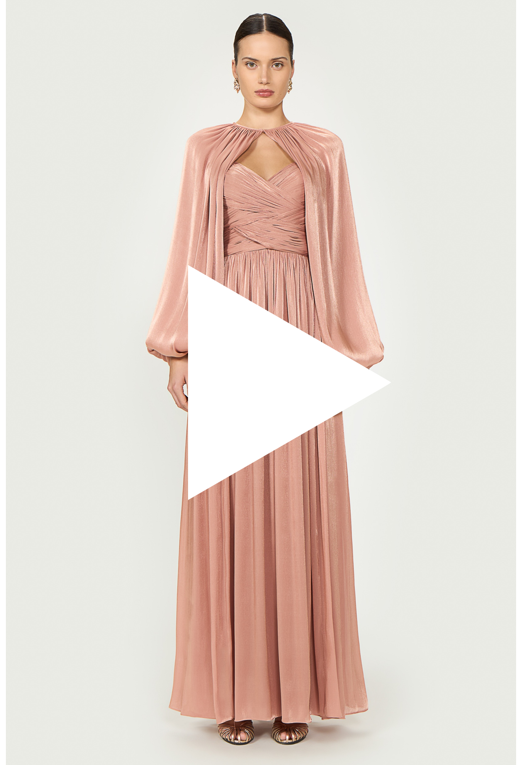 Featuring a shimmering finish and a cross design on the upper part, the Sireen gown, accompanied by a detachable bolero, creates a mesmerizing look that defines the silhouette with grace and glamour.